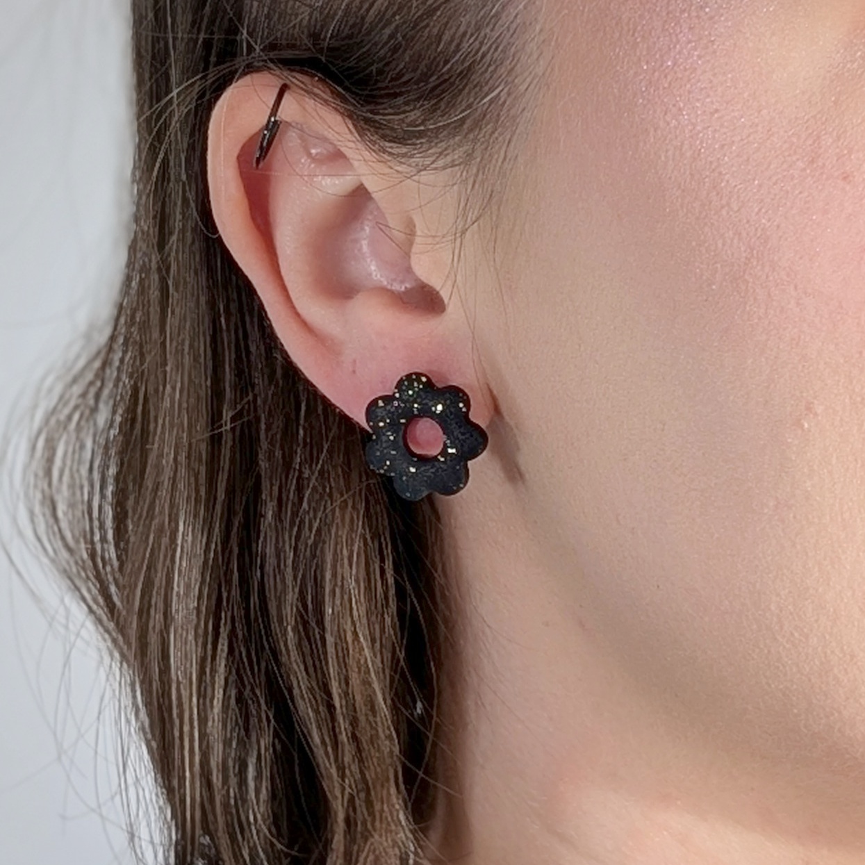 Minimalistyczne, a jednocześnie pełne charakteru – te ręcznie robione kolczyki w kształcie małych kwiatków zostały wykonane z lekkiej i trwałej gliny polimerowej. Matowa czerń nadaje im uniwersalności, dzięki czemu świetnie pasują zarówno do casualowych stylizacji, jak i bardziej eleganckich zestawów.