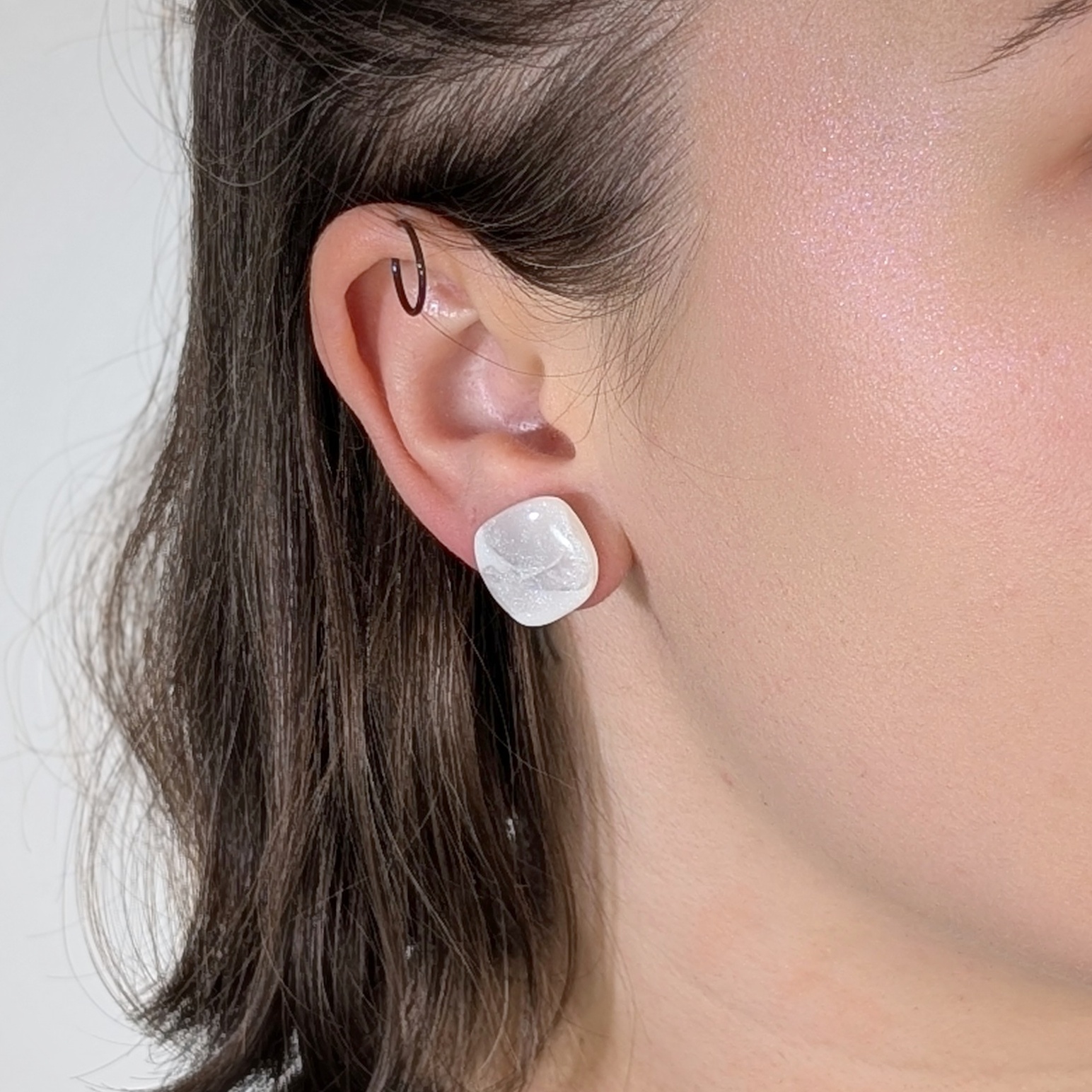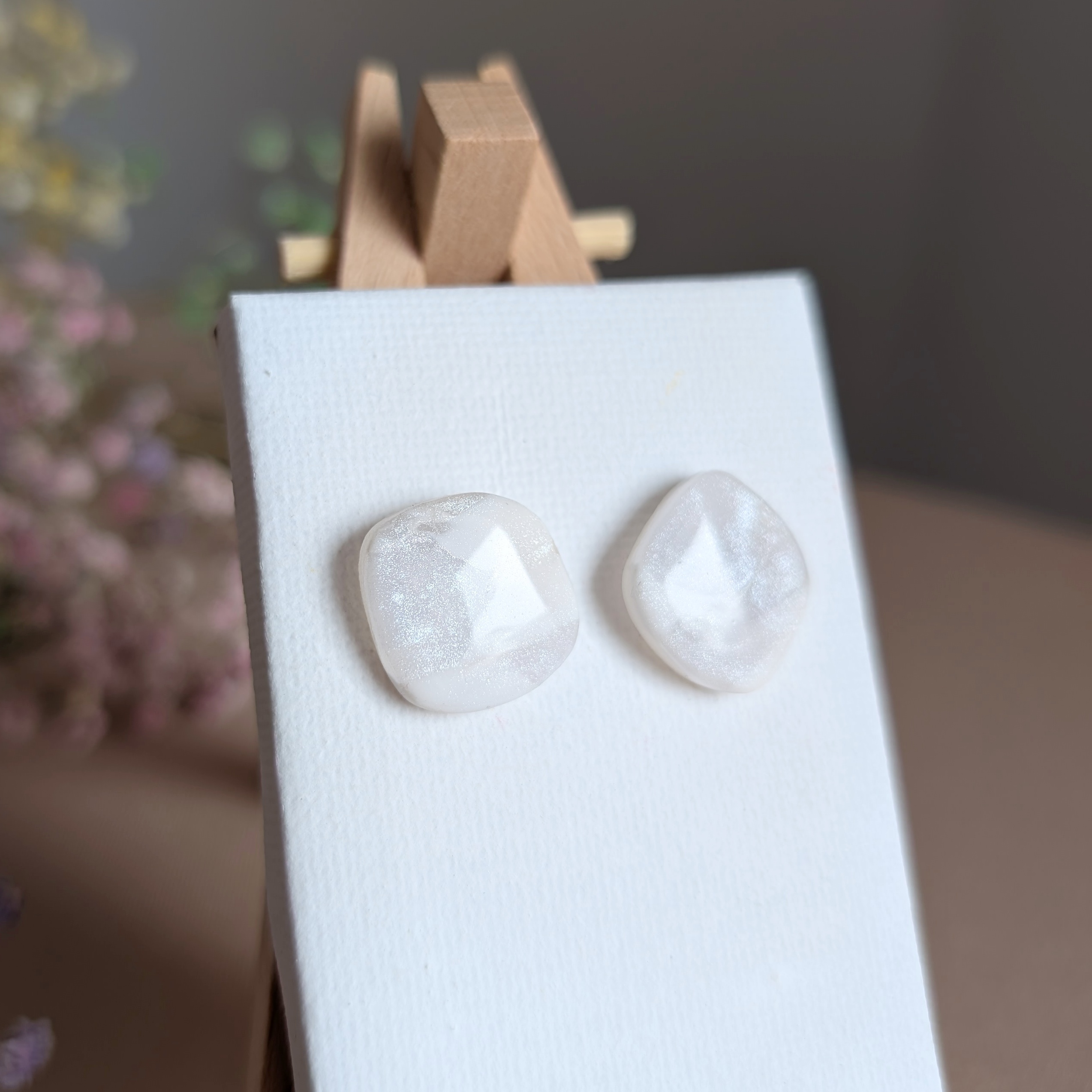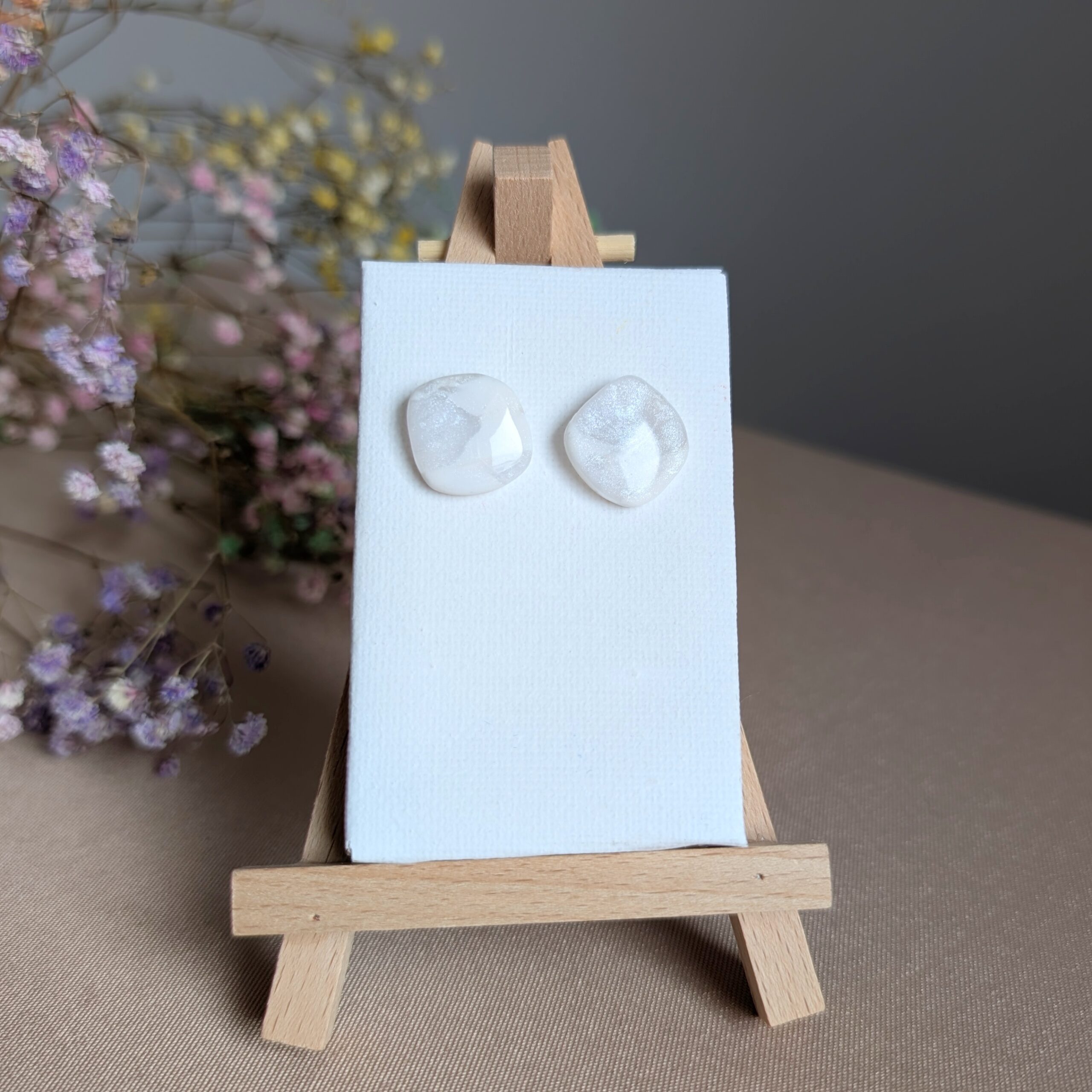 Minimalistyczne, a jednocześnie niezwykle efektowne – te ręcznie robione kolczyki z gliny polimerowej w kształcie czworokąta z zaokrąglonymi krawędziami to idealny wybór dla kobiet, które kochają subtelną elegancję. Ich delikatna, mleczno-biała barwa z połyskującymi drobinkami sprawia, że pięknie odbijają światło i pasują zarówno do codziennych stylizacji, jak i wieczorowych kreacji.