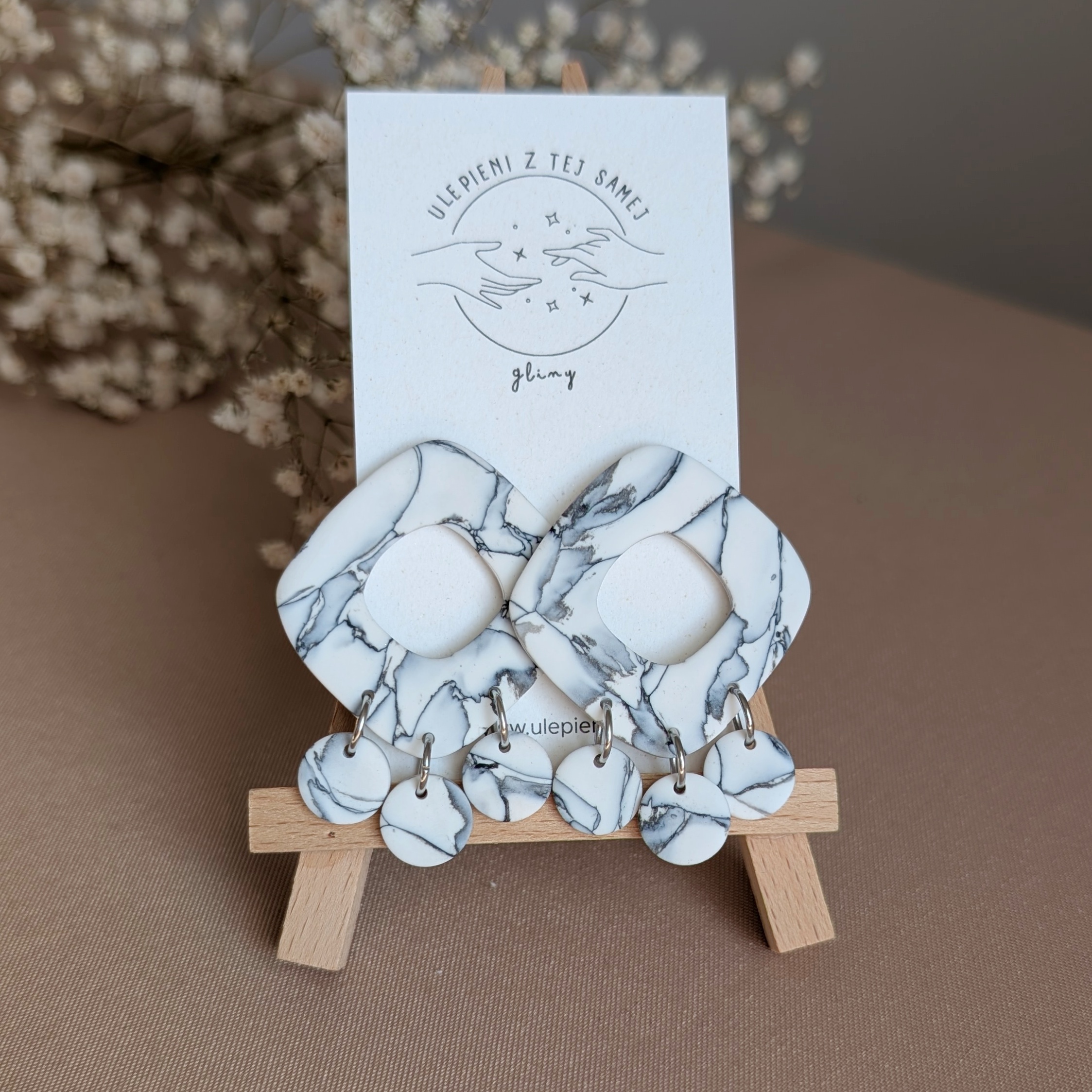 Zainspiruj się pięknem natury i postaw na wyjątkową formę! Kolczyki „Marmur Minimal” to ręcznie wykonana biżuteria z gliny polimerowej z niepowtarzalnym marmurkowym wzorem. Ich geometryczny kształt i matowe wykończenie sprawiają, że idealnie wpisują się w nowoczesny, minimalistyczny styl. Każda para jest unikatowa dzięki ręcznemu wykonaniu i nieregularnemu wzorowi. Ekologicznie i lokalnie – wykonane w Polsce z dbałością o każdy detal.