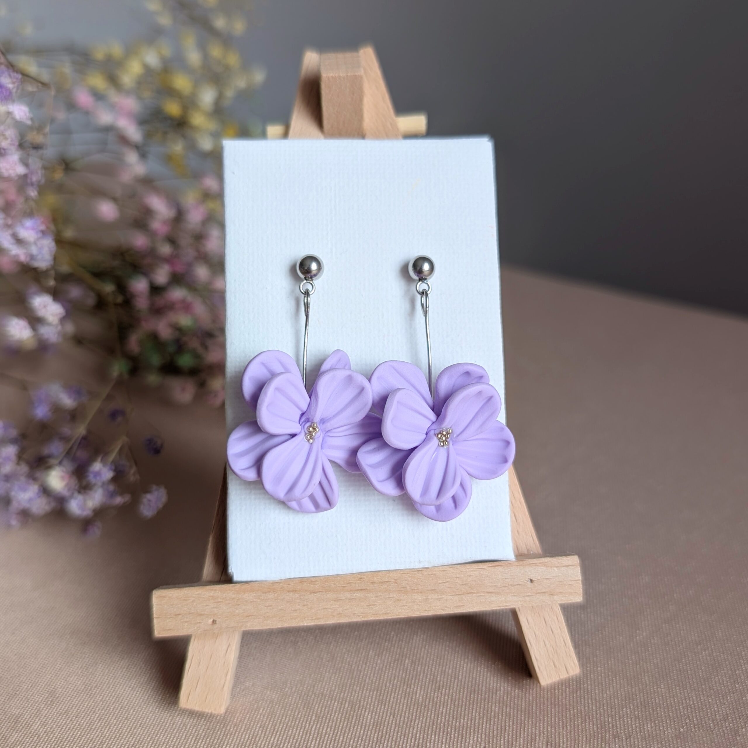Ręcznie robione kolczyki – Lawendowe Kwiaty