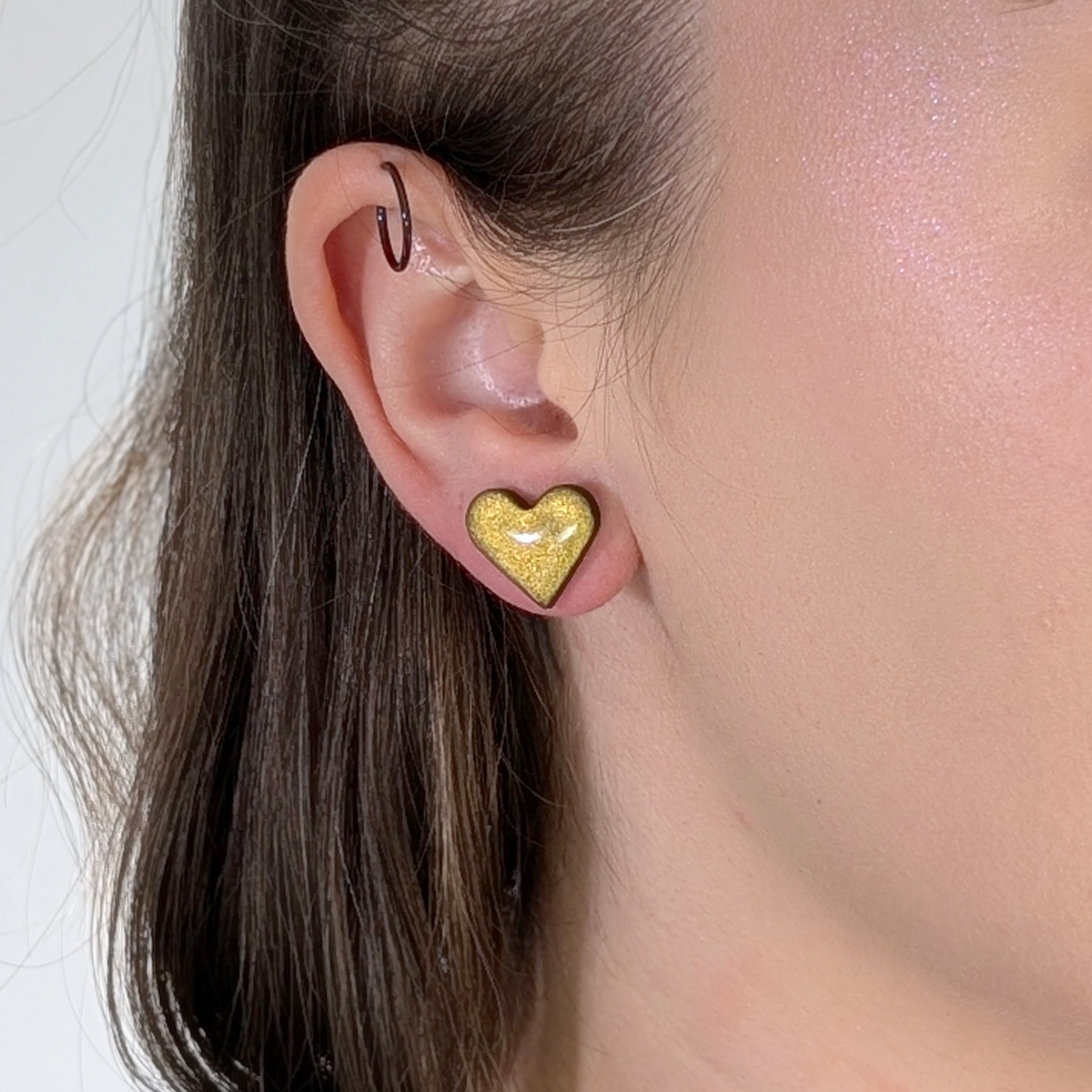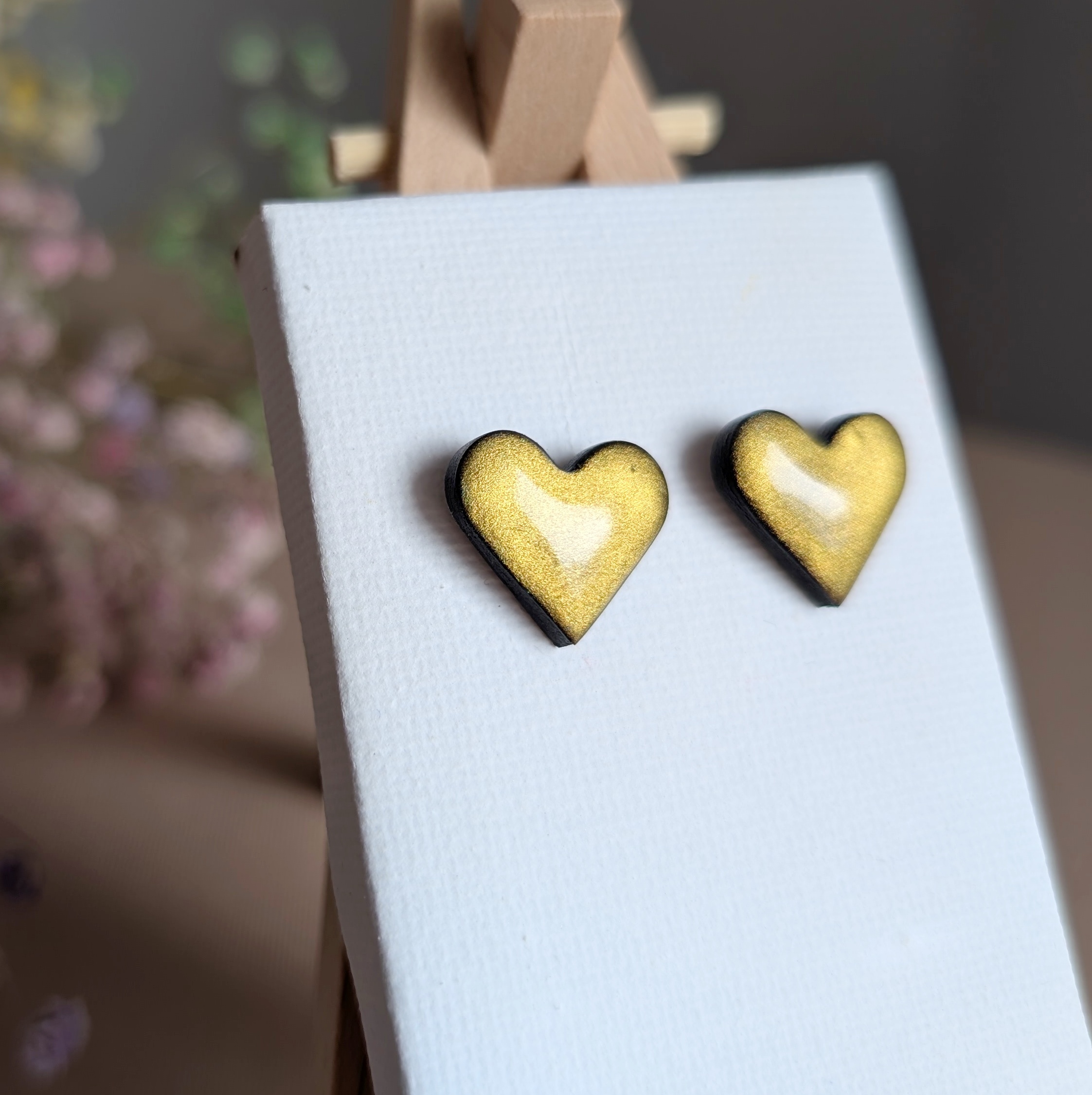 Kolczyki “Metaliczne Serduszka” – nowoczesna elegancja z pazurem. Te minimalistyczne kolczyki w kształcie serc przyciągają uwagę swoim metaliczno-złotym połyskiem, który dodaje im charakteru i nowoczesnego sznytu. Idealne dla osób, które kochają proste formy z wyrazistym efektem.