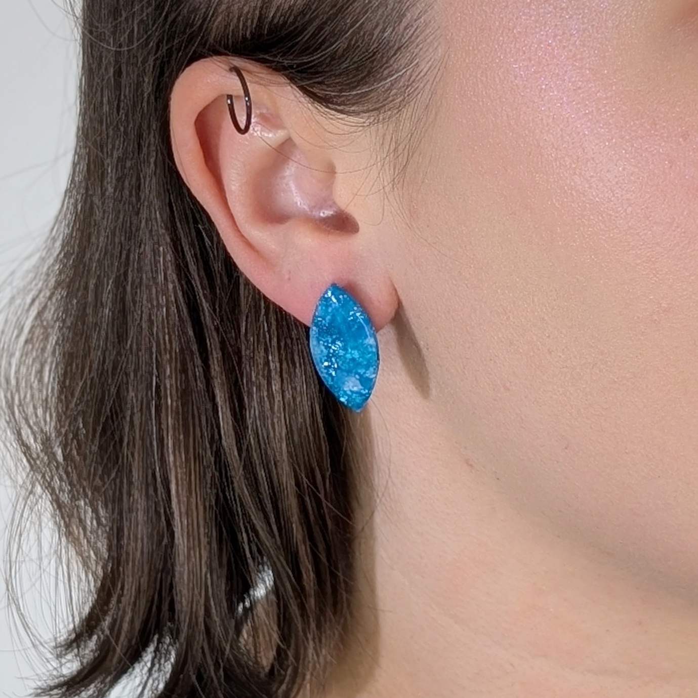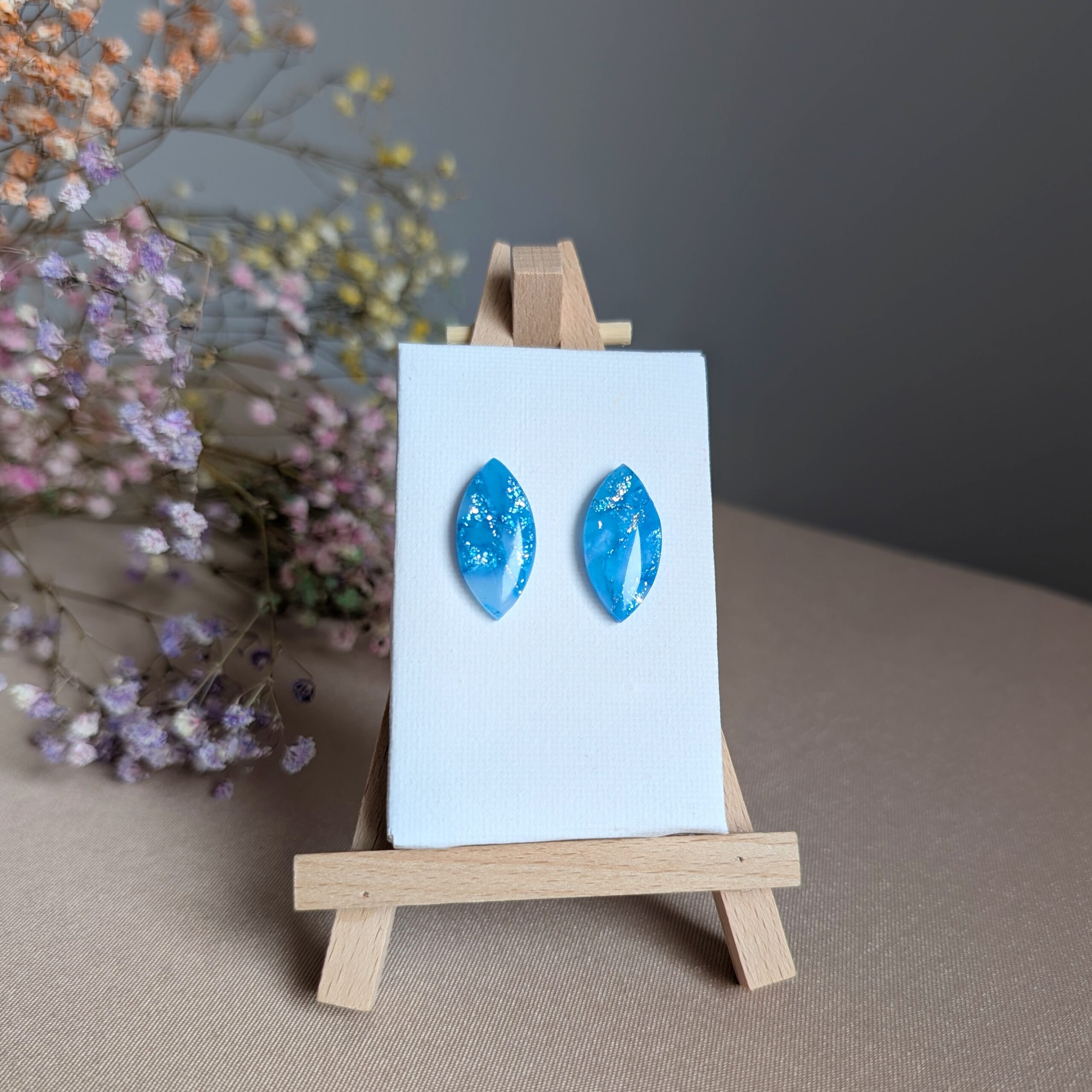 Zanurz się w głębi błękitu z tymi wyjątkowymi kolczykami z gliny polimerowej. Ręcznie wykonane, lekkie i niezwykle efektowne — zachwycają intensywnym, turkusowo-niebieskim kolorem oraz subtelnym połyskiem drobinek srebrnej folii, które odbijają światło niczym powierzchnia morza.