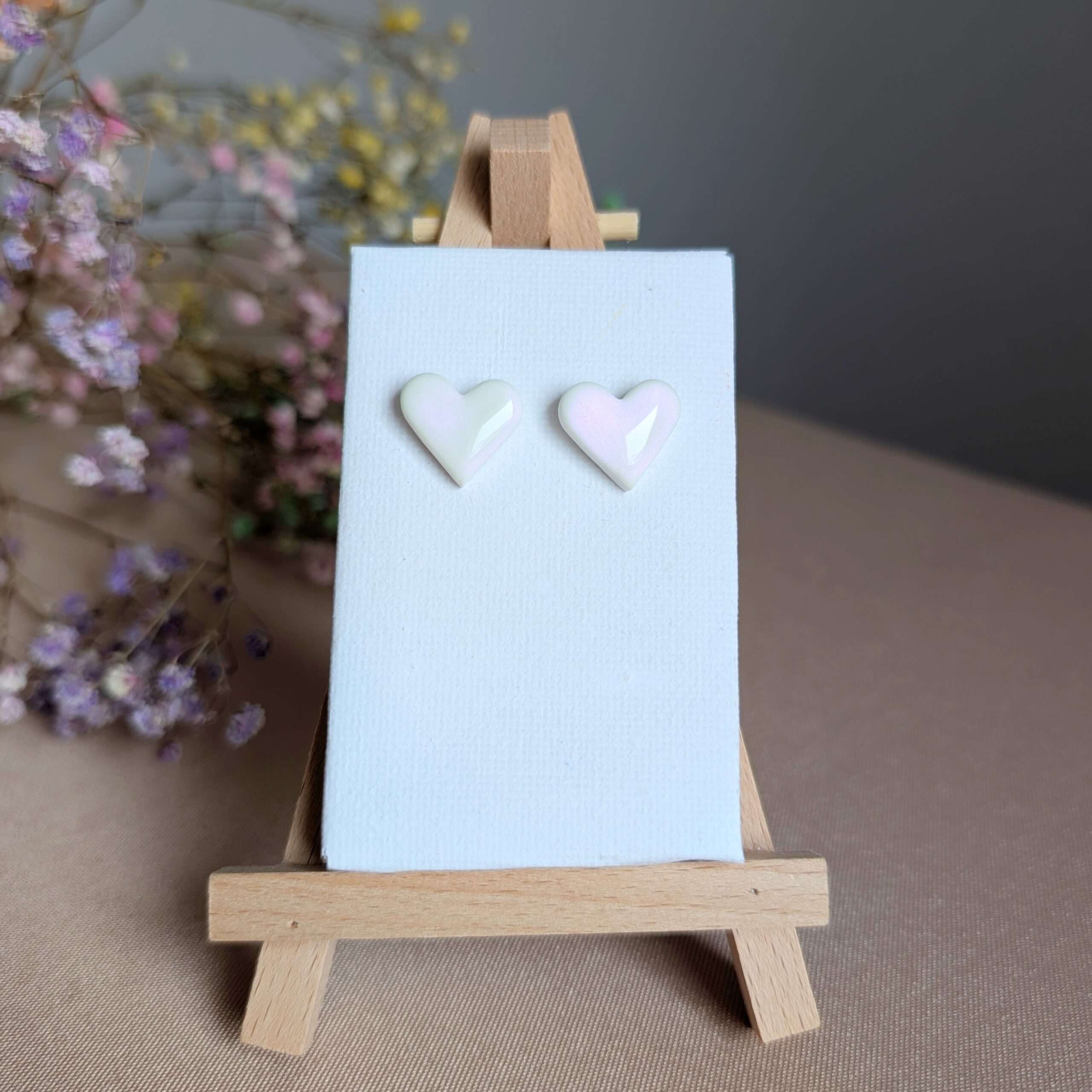 Te subtelne kolczyki w kształcie serc to kwintesencja romantyzmu i elegancji. Ich opalizująca powierzchnia mieni się delikatnym różem i bielą, tworząc efekt perły – idealny dla fanek minimalizmu z nutką magii.