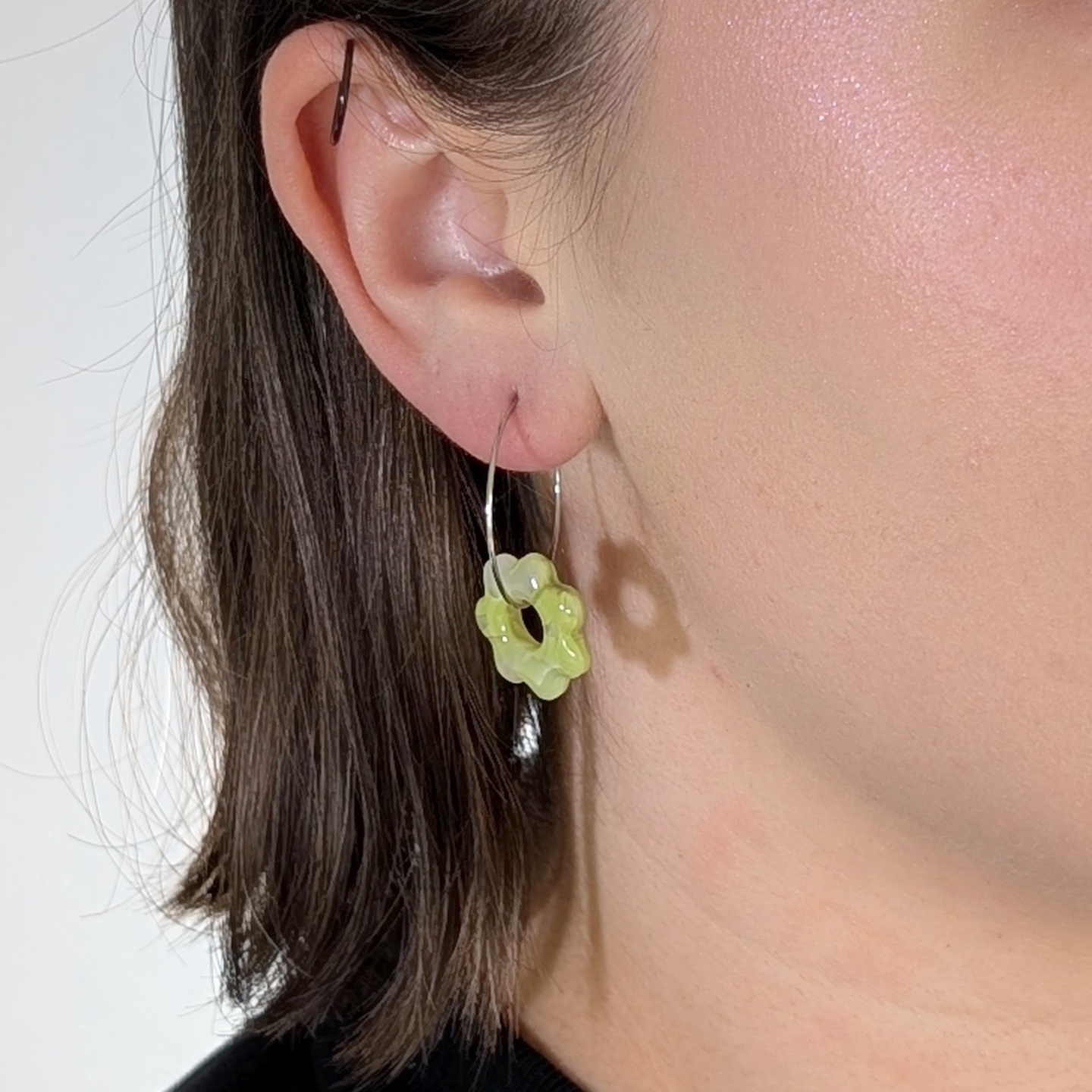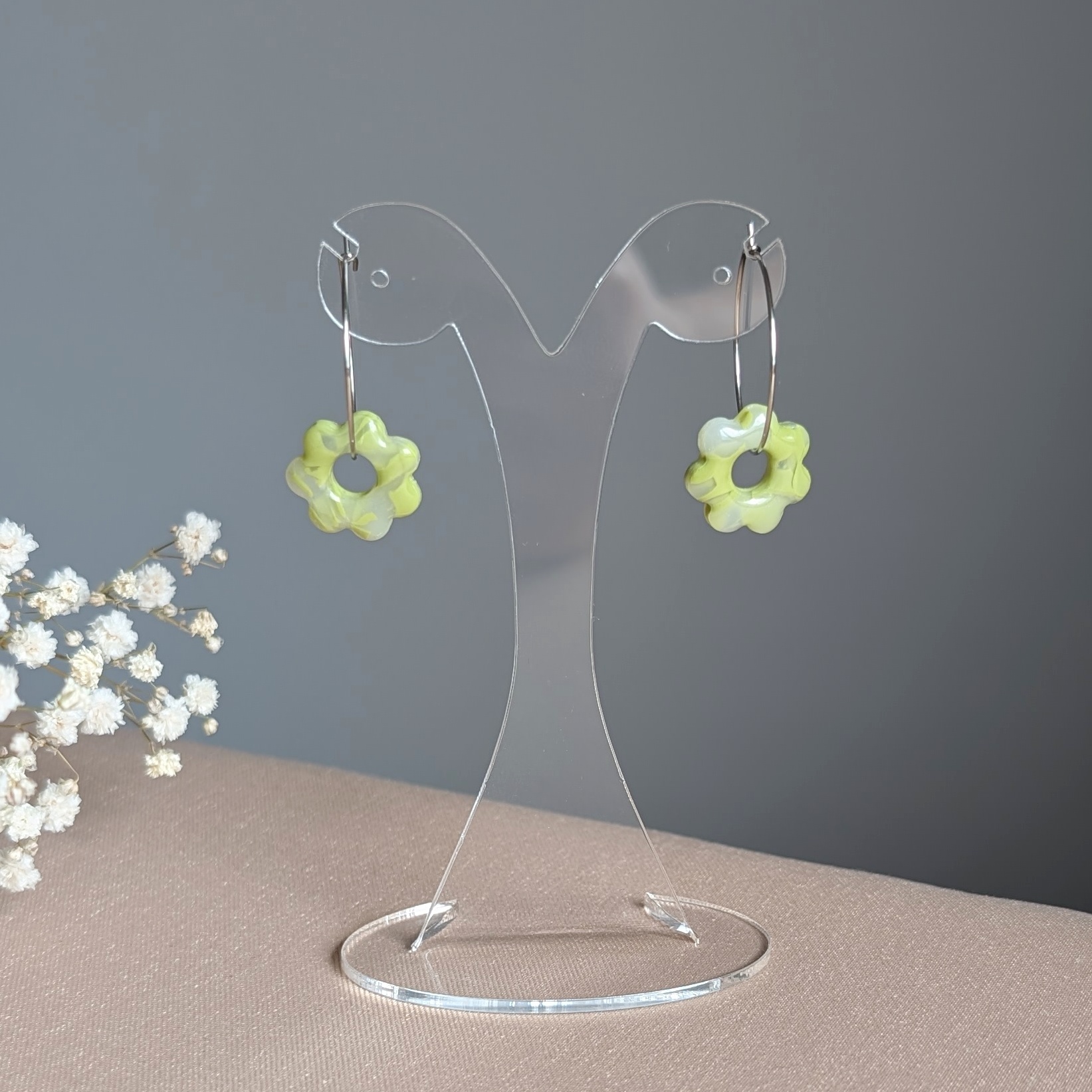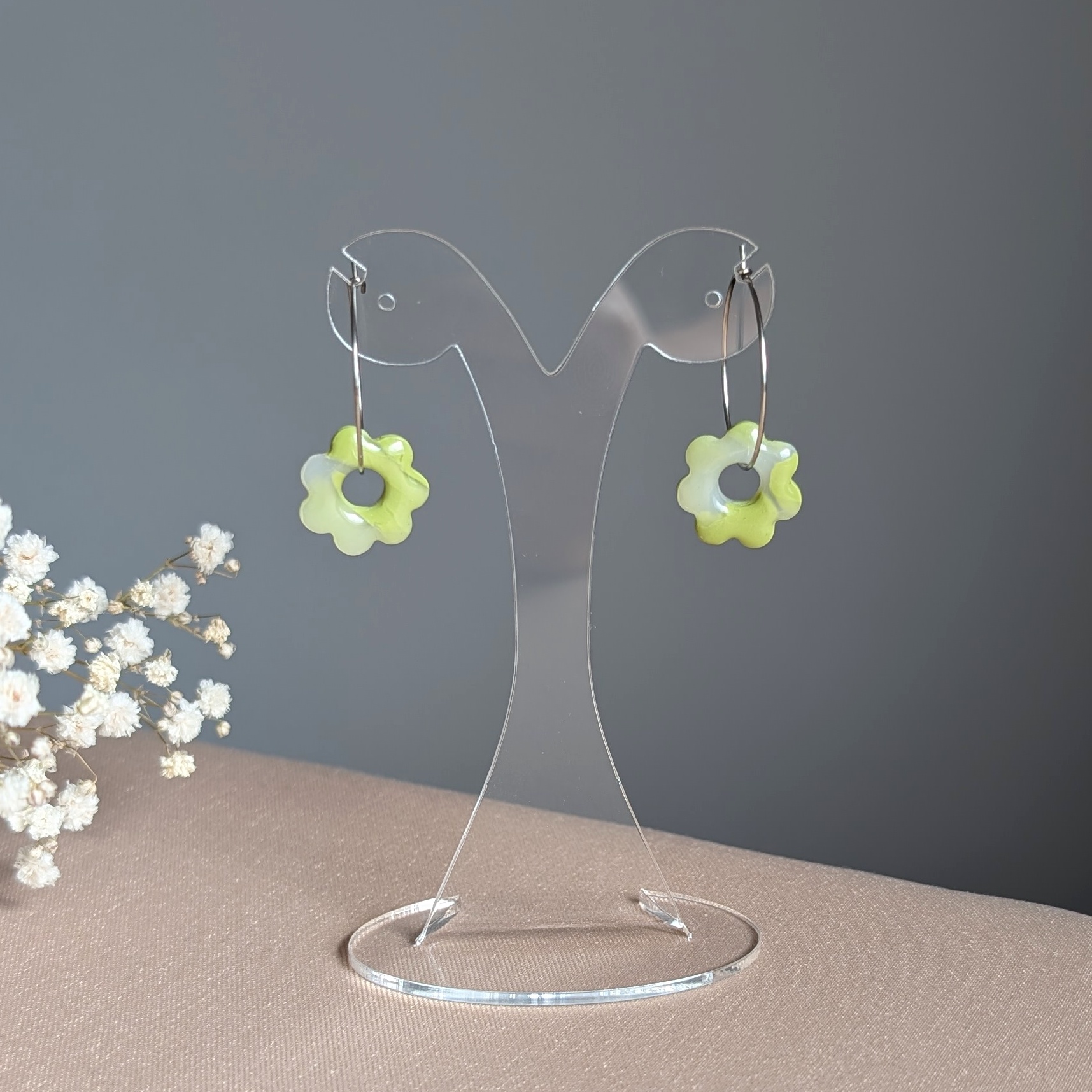 Dodaj odrobinę natury do swojej stylizacji dzięki tym unikalnym kolczykom inspirowanym kształtem kwiatu i subtelnymi odcieniami zieleni. Każda para została ręcznie wykonana z gliny polimerowej, dzięki czemu nie znajdziesz dwóch identycznych egzemplarzy – każdy to małe dzieło sztuki!